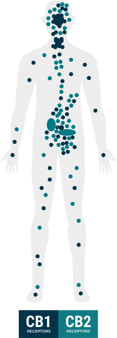 The following is a simplification of the ECS. Essentially there are cannabinoid receptors within the endocannabinoid system. The most commonly researched at this time are cannabinoid receptors 1 and 2, otherwise known as CB1 and CB2. However, as research continues, we are learning more and more about how cannabinoids work with our bodies through many other receptors and channels. The science behind the cannabis plant is advancing at a rapid pace.